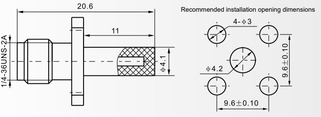 Voltage Standing Wave Ratio (VSWR, with semi-rigid/flexible cable) ≤1.10 + 0.02F