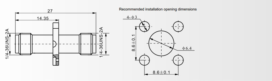 Voltage Standing Wave Ratio (VSWR, with semi-rigid/flexible cable) ≤1.10 + 0.02F
