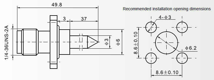 Voltage Standing Wave Ratio (VSWR, with semi-rigid/flexible cable) ≤1.10 + 0.02F