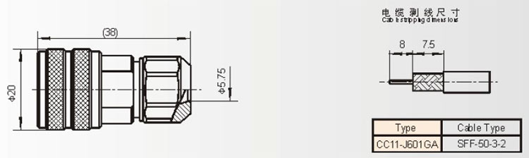 CC11系列射频同轴连接器是一种采用卡扣式自锁连接机构的中功率连接器,具有抗震、连接可靠、机械和电气性能优良等优点,广泛用于无线电设备和仪器中的同轴电缆连接,符合Q/MB516-91标准。