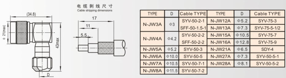 N型射频同轴连接器是按照MIL-C-39012、IEC60169-16和CECC 22210标准设计的中型连接器,阻抗为50Ω(75Ω),采用螺纹连接方式,具有大功率或中功率,工作频率可达11GHz。产品具有抗冲击能力强、可靠性高、机械电气性能优良等特点,广泛应用于基站设备、媒体通信、卫星通信系统和精密测量仪器,以及在高振动和环境负荷下连接无线电设备和仪器的射频同轴电缆。