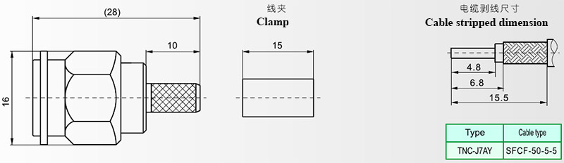 TNC系列产品是按照美国军标MIL-C-39012 研制生产的一种具有螺纹连接机构的中小功 率连接器。它具有抗振性强、可靠性高、 机械和电气性能优良等特点,广泛地应用于 无线电设备和仪器中连接射频同轴电缆。 该系列产品能与国际上TNC系列射频同 轴连接器相应产品进行互换,该系列产品执 行Q/MB415-92企业标准。